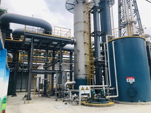我公司采用的化学吸收法是使烟气和吸收液在吸收塔内发生化学反应,二氧化碳被吸收至溶剂中形成富液,富液进入解析塔加热分解出CO2,吸收与脱吸交替进行,从而实现CO2的分离回收。
